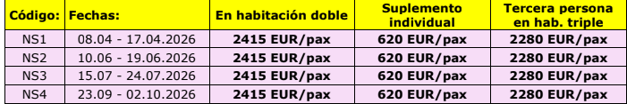 - Traslado día 10 (hotel WAW – aeropuerto Chopin WAW). Suplemento por un traslado cuesta 60 EUR (1-2 pax), 85 EUR (3-5 pax). Traslados antes de las 6 am y despues de las 10 pm cuestan 30% más.