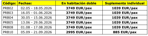 • 16 noches en habitación doble en hoteles céntricos 4* y 5* previstos o similares: