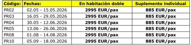 • Billete de vuelta Bucarest – Varsovia. Suplemento 150 EUR/pax.