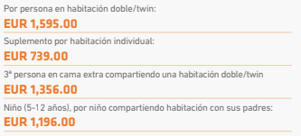 • Visitas, excursiones y entradas mencionadas en el programa.